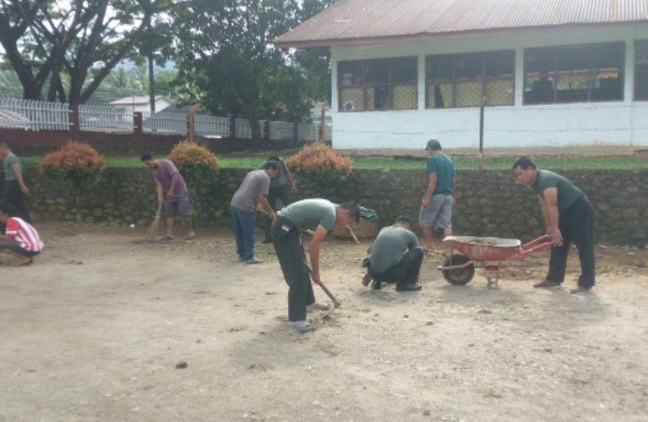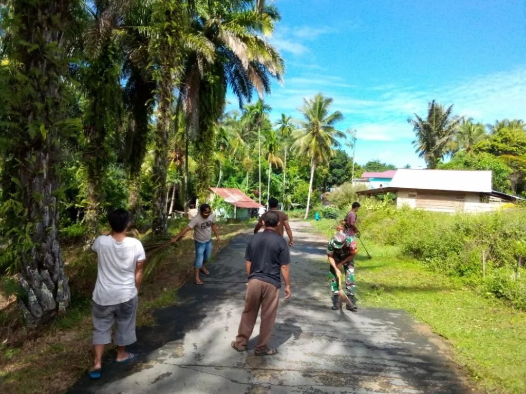 Babinsa bersama warga binaan laksanakan gotong royong bersihkan jalan