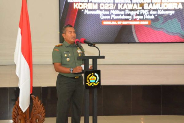 Bertempat di Aulah Gupala Makorem 023/KS, Seluruh Prajurit, PNS dan Persit menerima Penyuluhan Mental Ideologi, Kejuangan dari Bintal Kodam I/BB. Kamis (07/09/2023) Danrem 023/KS Kolonel Inf Lukman Hakim dalam sambutanya…