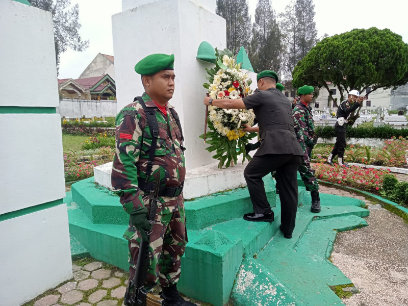Kegiatan ziarah diawali dengan penghormatan umum kepada para pahlawan Kusuma Bangsa dilanjutkan dengan peletakan karangan bunga di tugu Makam Pahlawan oleh pimpinan ziarah Dandim 0205/TK Letkol Inf Ahmad Afriyan Rangkuti.