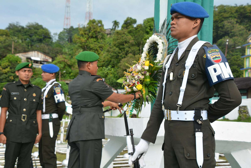 Selepas memimpin acara ziarah, Danrem meletakkan karangan bunga di tugu Makam Pahlawan. “Sebagai generasi bangsa saat ini, kita memiliki tanggung jawab untuk meneruskan perjuangan mereka dalam mengisi kemerdekaan. Mari abdikan pikiran dan tenaga kita demi kemajuan bangsa Indonesia sesuai dengan tugas dan kewajiban masing-masing,” ujar Danrem.