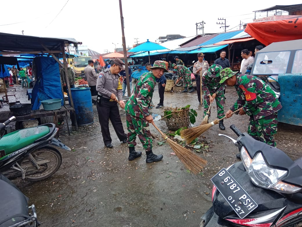 Kita bersinergi dengan seluruh pihak dalam rangka menjaga kebersihan lingkungan, menciptakan situasi yang aman dan nyaman juga bersih di tempat-tempat umum atau fasilitas yang tersedia,” kata kapten Inf A. Siregar.