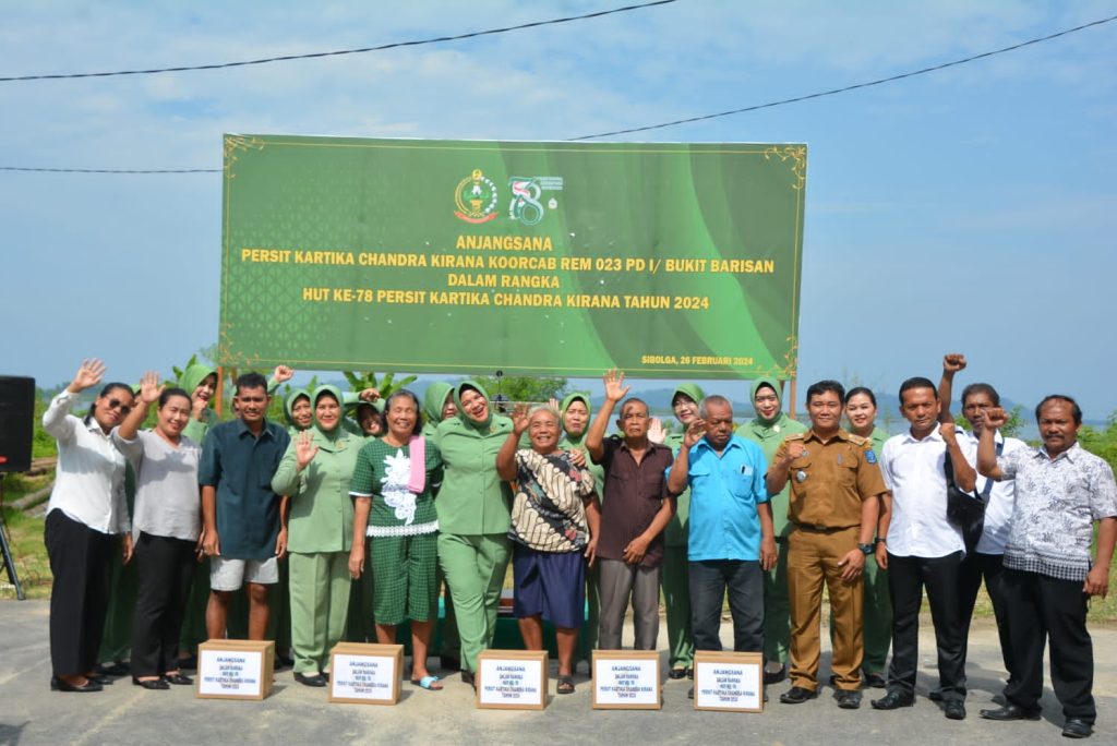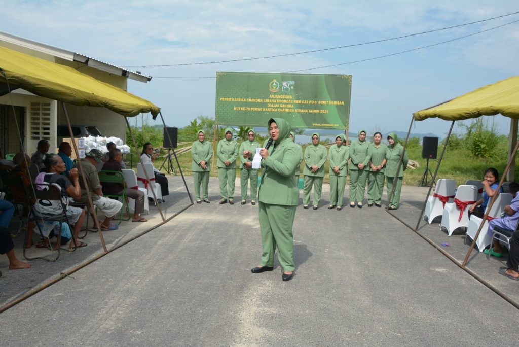 Sebagai Rasa Syukur menyambut HUT Ke-78 Persit KCK Koorcabrem 023 PD I/BB melaksanakan Anjangsana kepada masyarakat dan membagikan Sembako, Senin (26/2/2024).