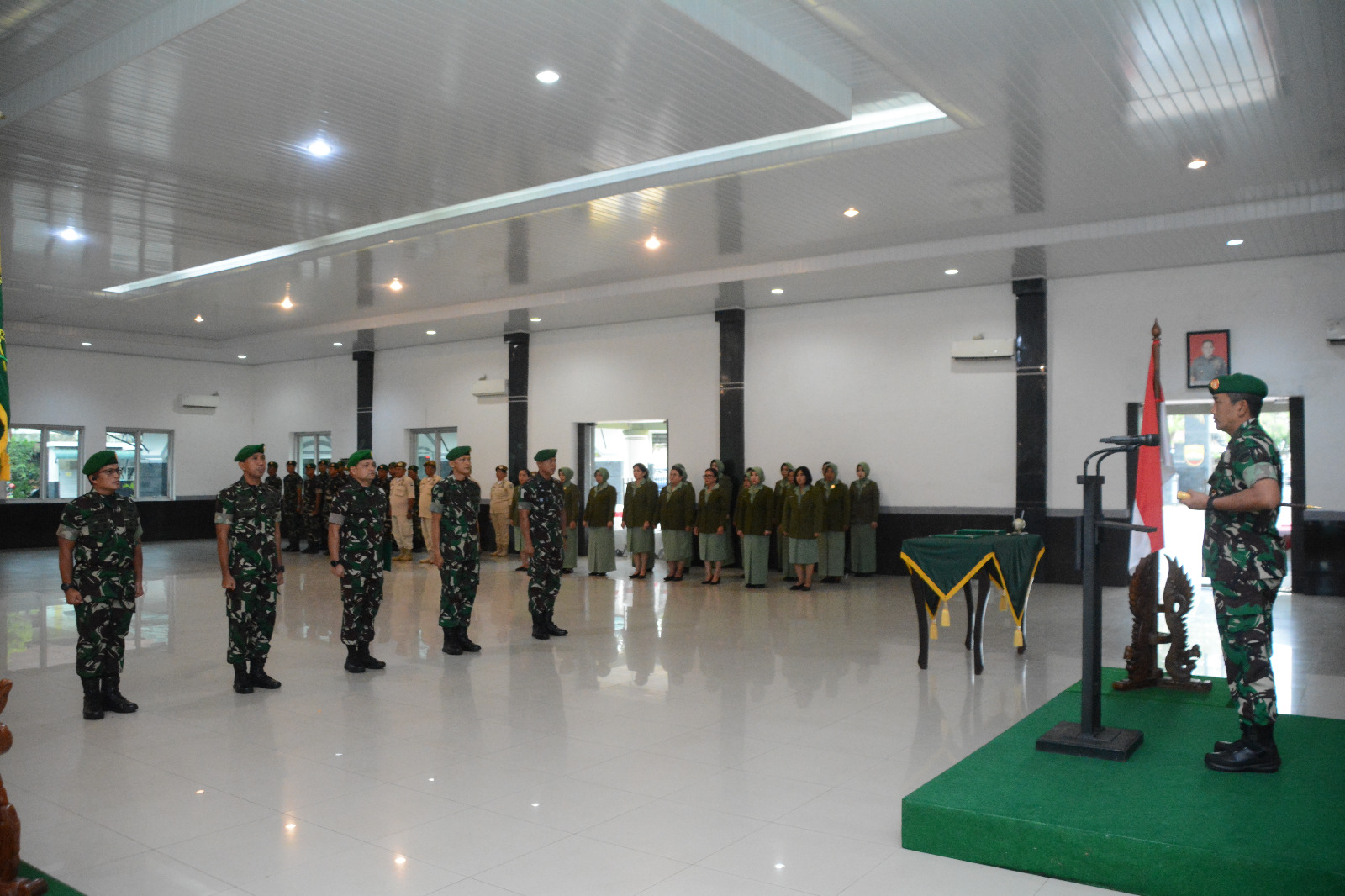 Hadir dalam kegiatan Danrem 023/KS, Kasrem, Para Kasi, Dandim jajaran Korem, Danyonif 123/RW, Ketua Persit KCK Koorcabrem 023 PD I/BB (riilpenrem023ks)