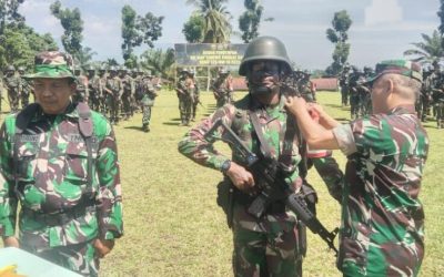 Padangsidimpuan. untuk meninjau langsung kesiapan operasional satuan, Prajurit Yonif 123/RW yang akan melaksanakan tugas Operasi sebagai penjaga kedaulatan wilayah perbatasan RI-PNG, Pangdam I/BB Mayjen TNI Rio Firdianto didampingi Ketua Persit…